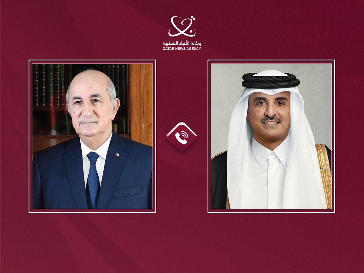 الدوحة في 01 مارس /قنا/ تلقى حضرة صاحب السمو الشيخ تميم بن حمد آل ثاني أمير البلاد المفدى، اتصالا هاتفيا اليوم، من أخيه فخامة الرئيس عبدالمجيد تبون رئيس الجمهورية الجزائرية الديمقراطية الشعبية الشقيقة.