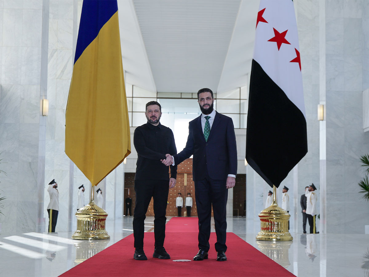 دمشق في 05 أبريل /قنا/ بحث الرئيس السوري أحمد الشرع، اليوم، مع نظيره الأوكراني فولوديمير زيلينسكي، الذي يزور العاصمة دمشق حاليا، سبل تعزيز العلاقات الثنائية والتعاون الاقتصادي.