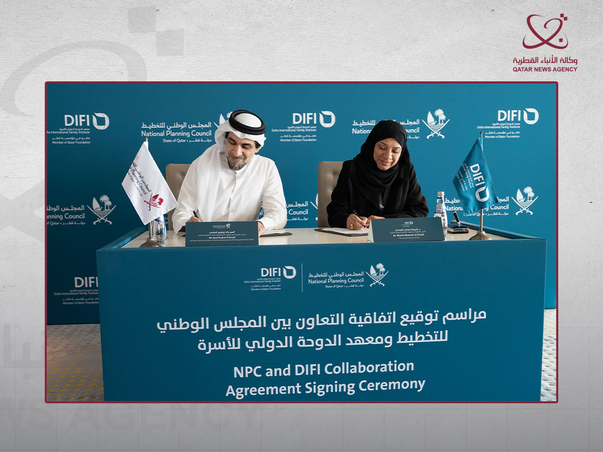 Doha, March 29 (QNA) – The National Planning Council (NPC) and the Doha International Family Institute (DIFI), a member of Qatar Foundation, have signed a Memorandum of Understanding (MoU) regarding research collaboration on demographic and social issues, with the aim of exchanging expertise and enhancing cooperation in the fields of research, studies, surveys, and opinion polls.