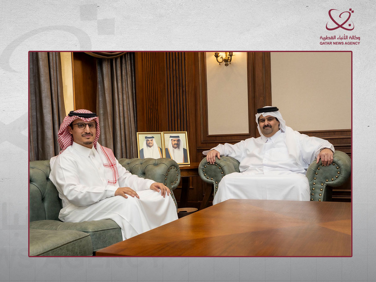 Doha, April 08 (QNA) – HE CEO of Qatar Media Corporation (QMC) Sheikh Khalid bin Abdulaziz bin Jassim Al-Thani met on Wednesday with HRH Ambassador of the Kingdom of Saudi Arabia to Qatar Prince Saad bin Mansour bin Saad bin Saud bin Abdulaziz Al-Saud.
