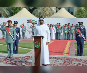 سيف بن زايد يرفع علم الدولة على سارية مبنى الداخلية