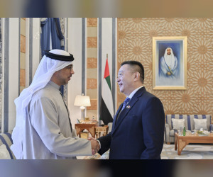 خالد بن محمد بن زايد يستقبل مكتوم بن محمد بن راشد في ‘أدنوك’