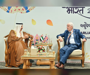 صقر غباش يلتقي رئيس مجلس العموم البريطاني على هامش قمة رؤساء برلمانات مجموعة العشرين
